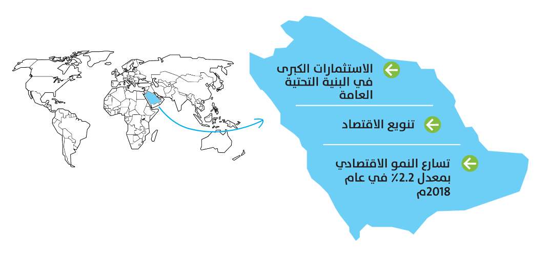 وتشهد دول مجلس التعاون الخليجي نمواً اقتصادياً متسارعاً مدعوماً بارتفاع أسعار النفط (مقارنة بعام 2017م) وتصحيح الأوضاع المالية مما سيحفز الطلب المحلي.
